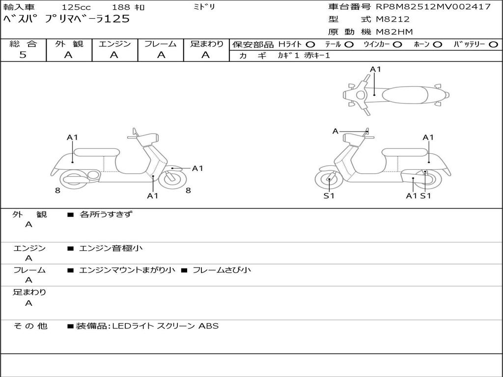 | Номер рамы / VIN | RP8M82512MV002417 |