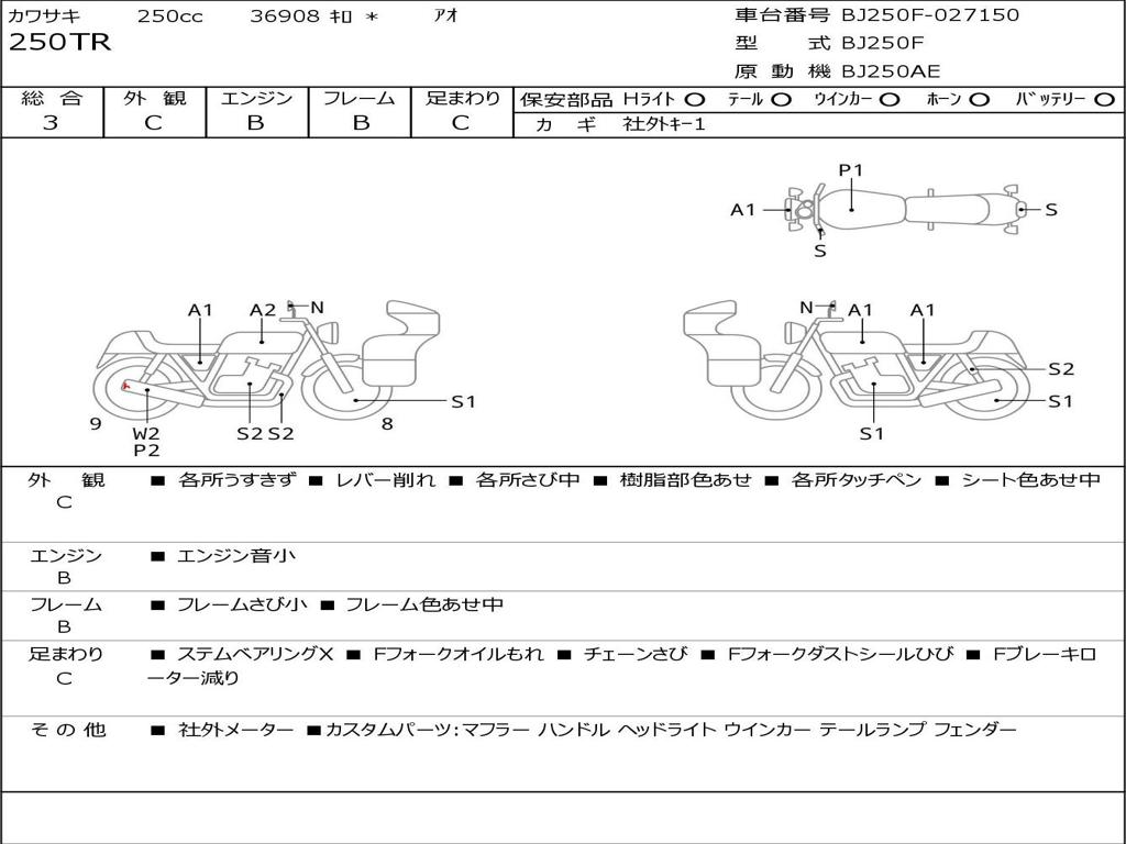 | Номер рамы / VIN | BJ250F-027150 |