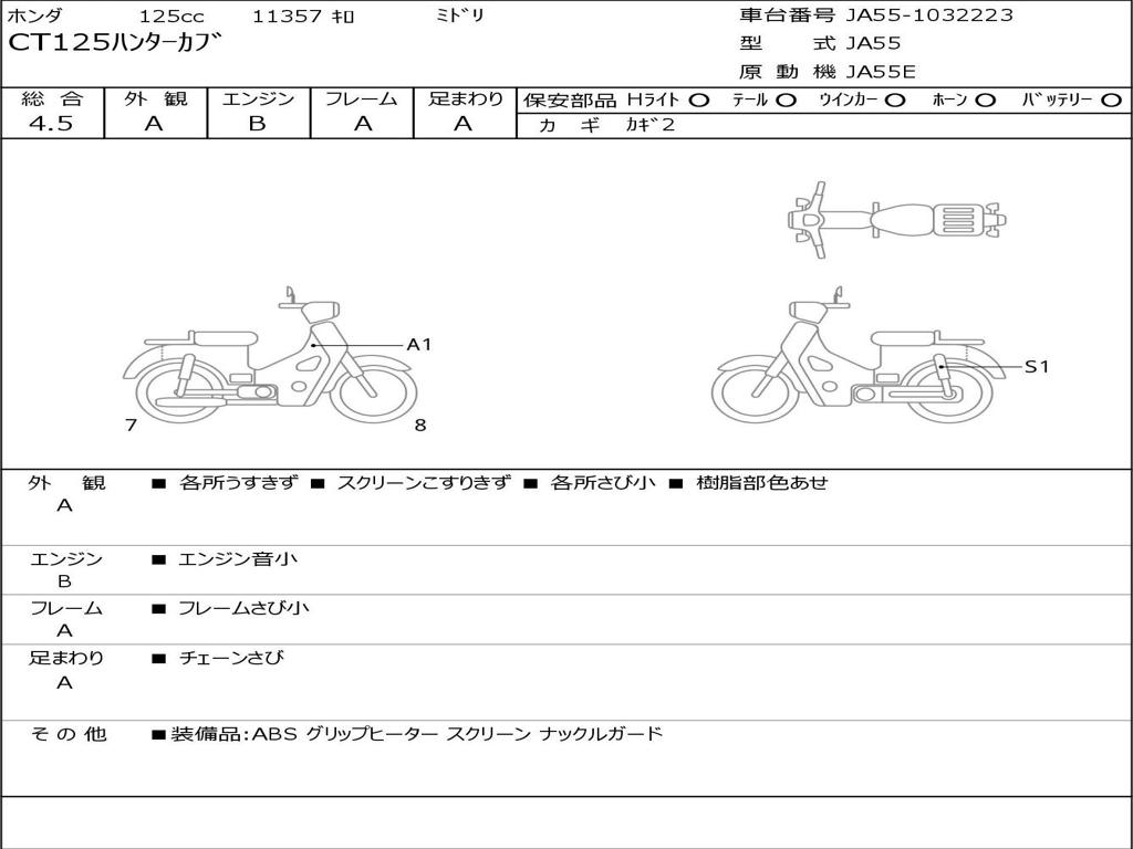 | Номер рамы / VIN | JA55-1032223 |