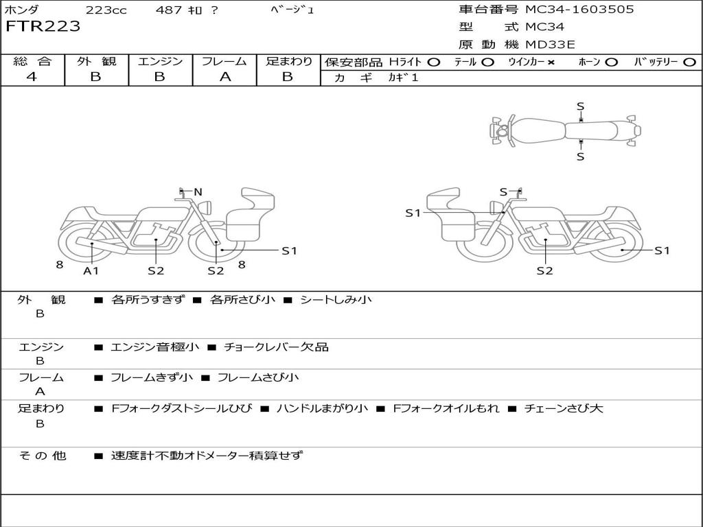 | Номер рамы / VIN | MC34-1603505 |