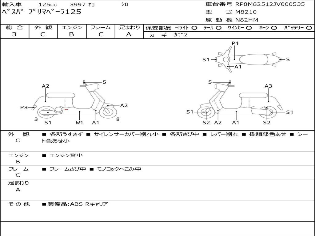 | Номер рамы / VIN | RP8M82512JV000535 |