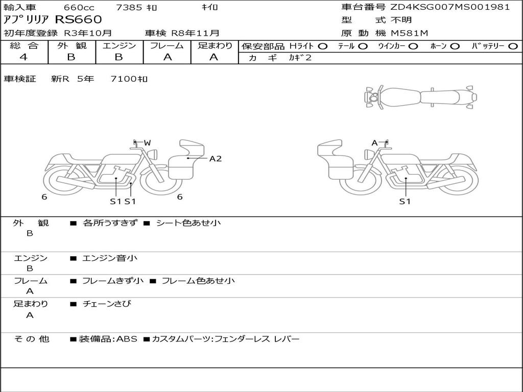 | Номер рамы / VIN | ZD4KSG007MS001981 |