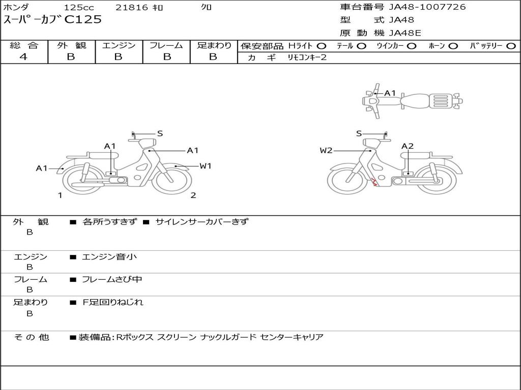 | Номер рамы / VIN | JA48-1007726 |