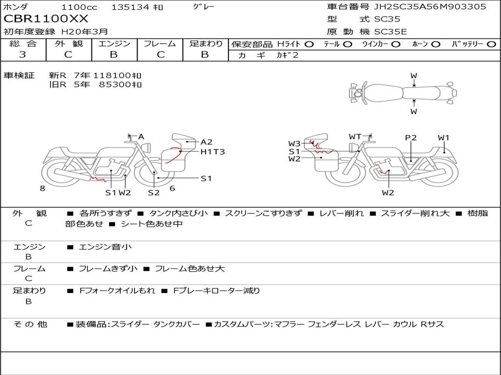 | Номер рамы / VIN | JH2SC35A56M903305 |