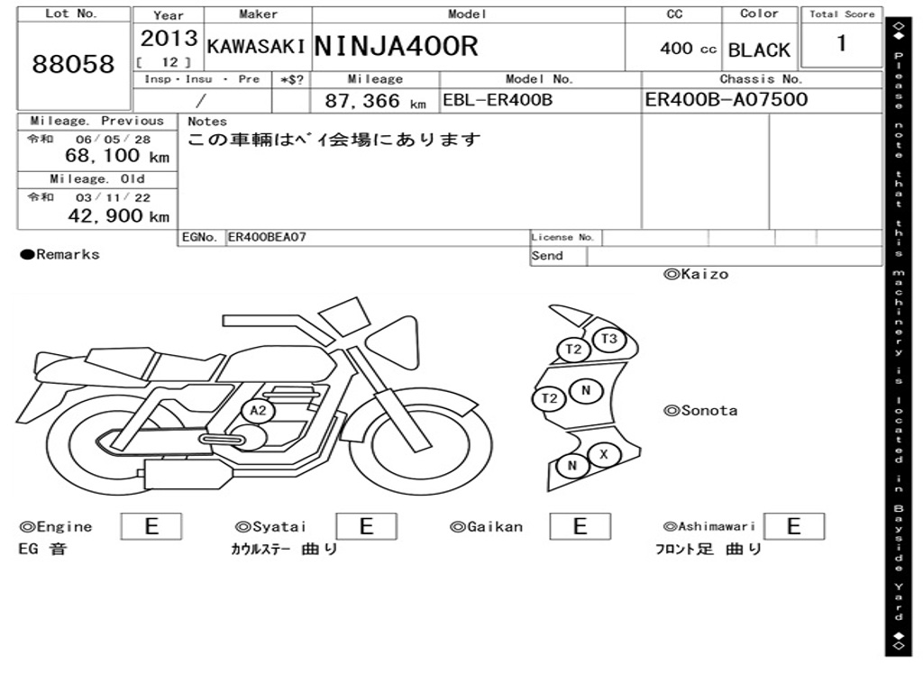 | Номер рамы / VIN | ER400B-A07500 |