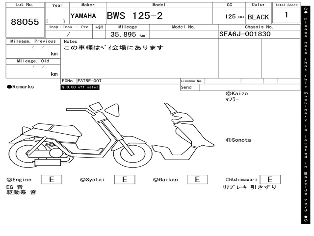 | Номер рамы / VIN | SEA6J-001830 |