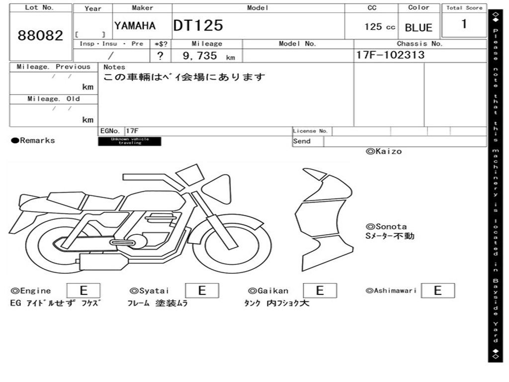 | Номер рамы / VIN | 17F-102313 |