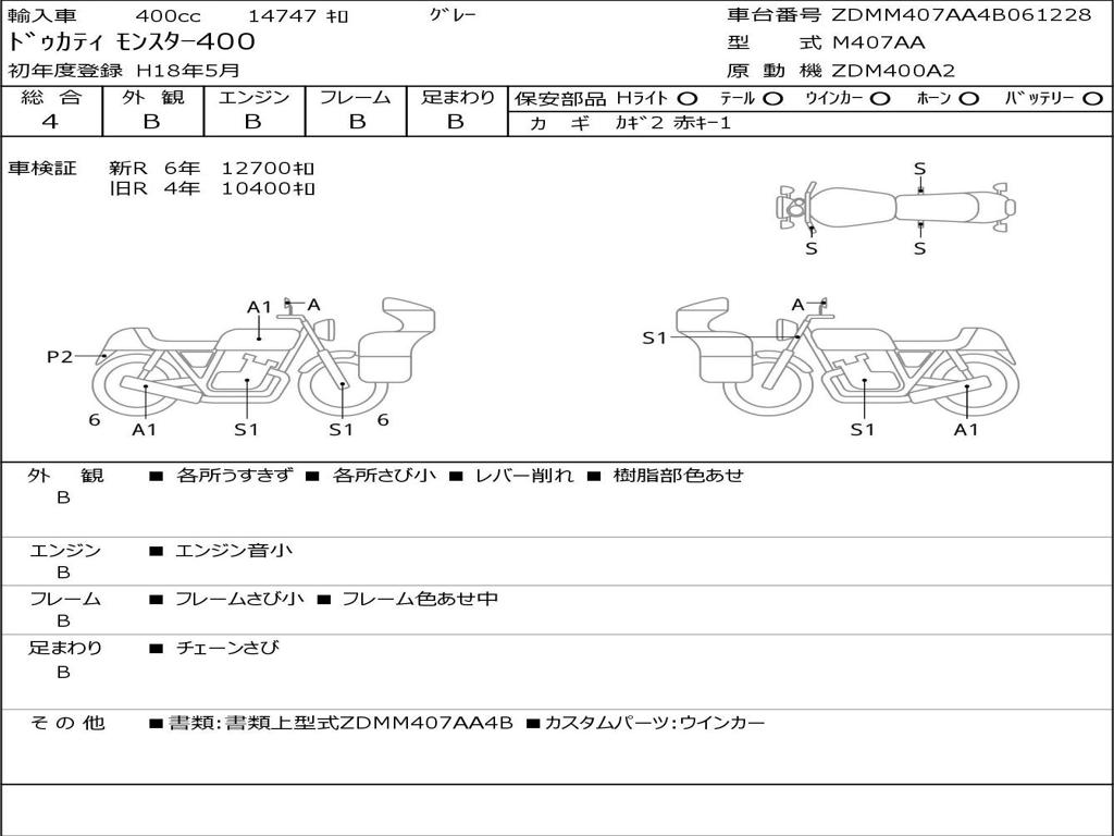 | Номер рамы / VIN | ZDMM407AA4B061228 |