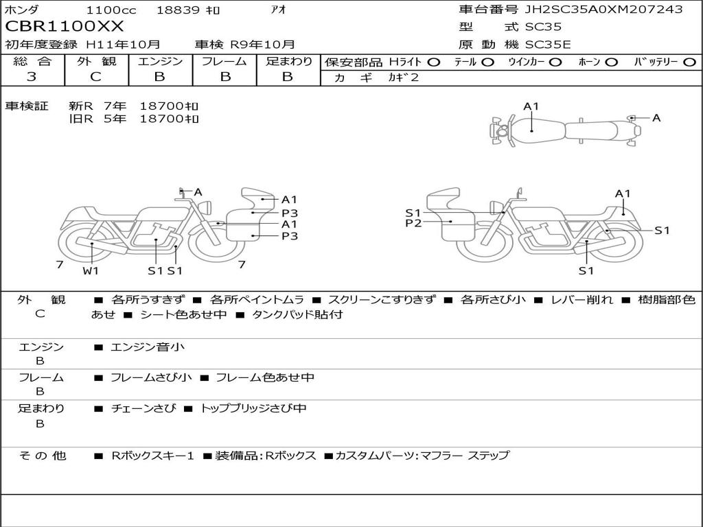 | Номер рамы / VIN | JH2SC35A0XM207243 |