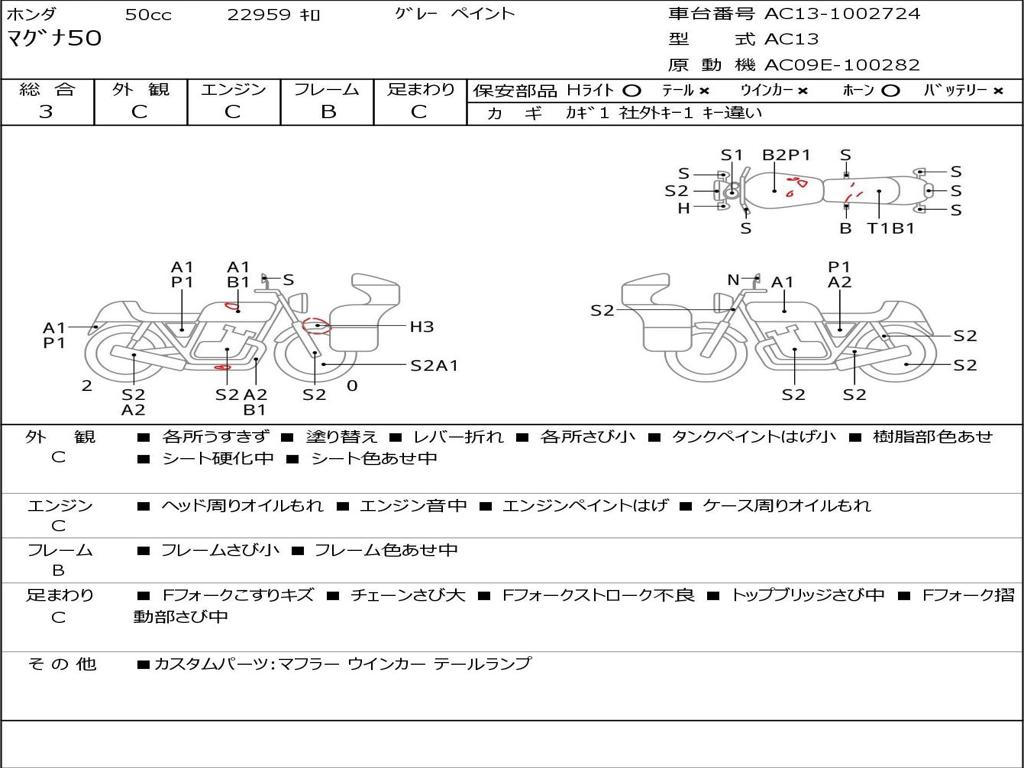 | Номер рамы / VIN | AC13-1002724 |