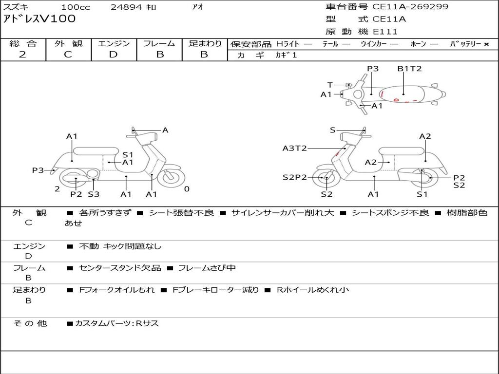 | Номер рамы / VIN | CE11A-269299 |