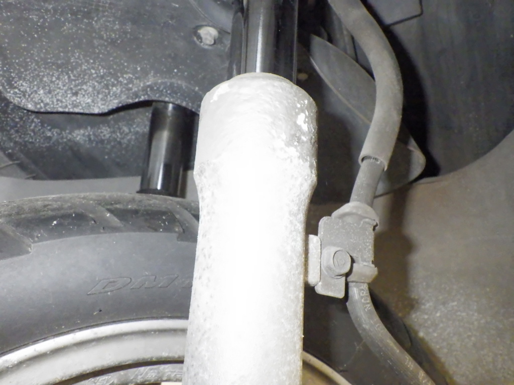 | внешняя часть вилки | следы коррозии <много>, износ(потертость) краски, потек масла <много>, уровень шума |