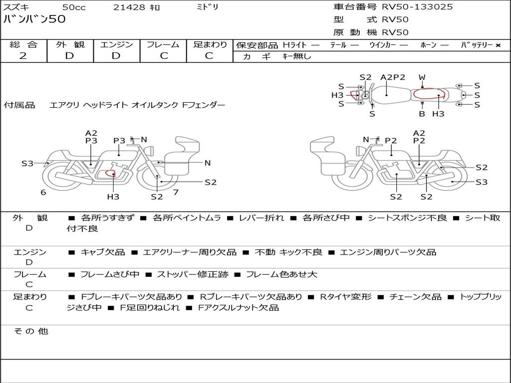 | Номер рамы / VIN | RV50-133025 |