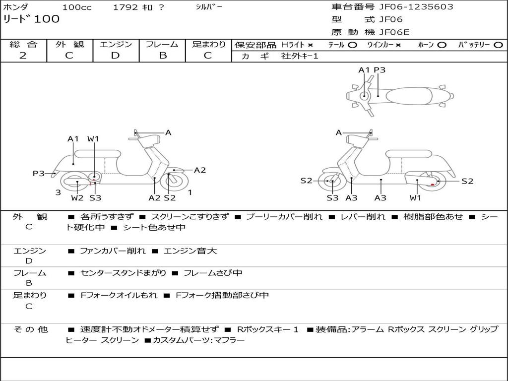 | Номер рамы / VIN | JF06-1235603 |