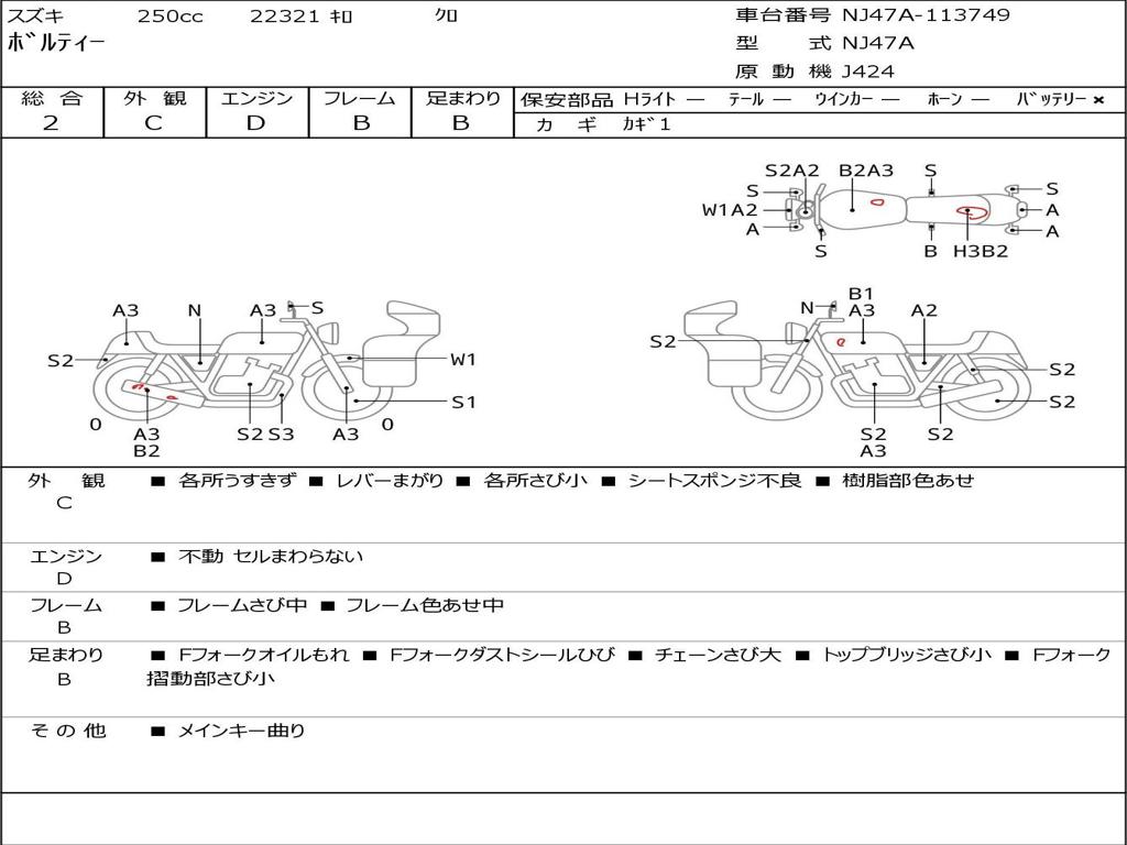 | Номер рамы / VIN | NJ47A-113749 |