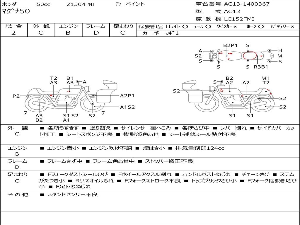 | Номер рамы / VIN | AC13-1400367 |