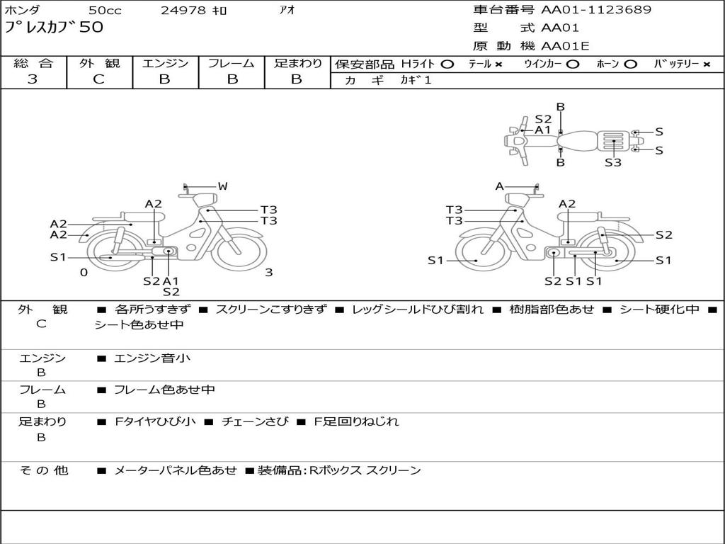 | Номер рамы / VIN | AA01-1123689 |