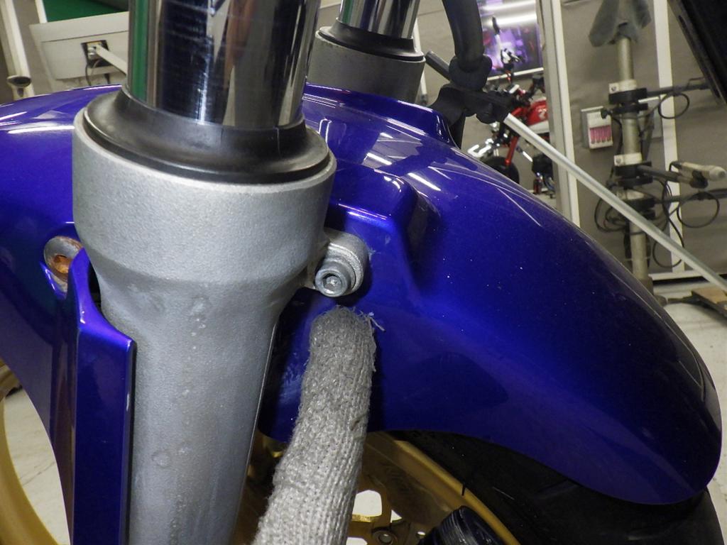 | внешняя часть вилки | следы коррозии <много>, потек масла |