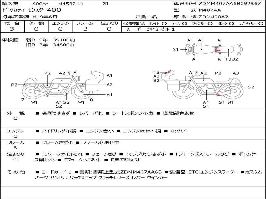 | Номер рамы / VIN | ZDMM407AA6B092867 |