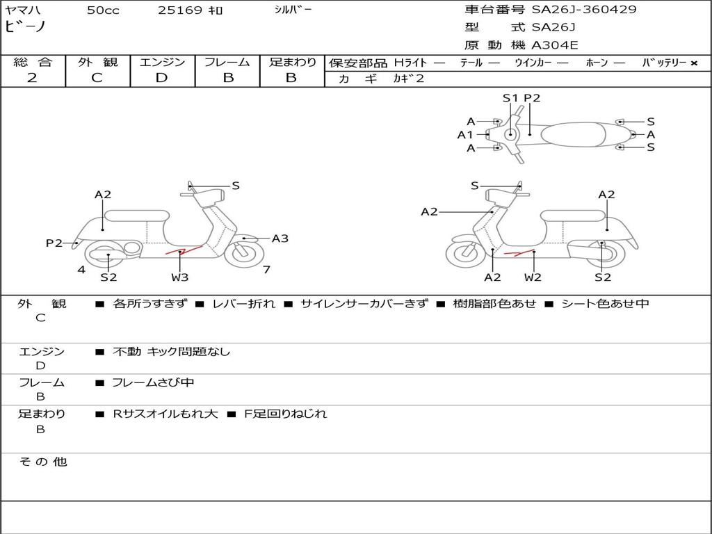 | Номер рамы / VIN | SA26J-360429 |