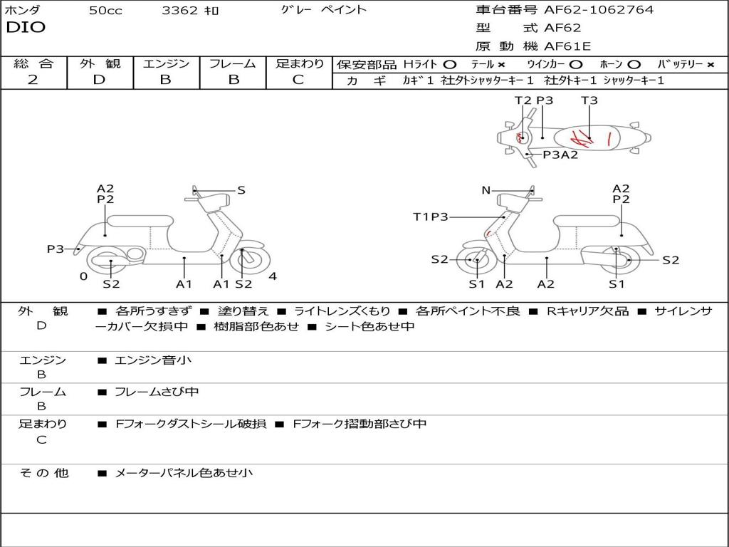 | Номер рамы / VIN | AF62-1062764 |