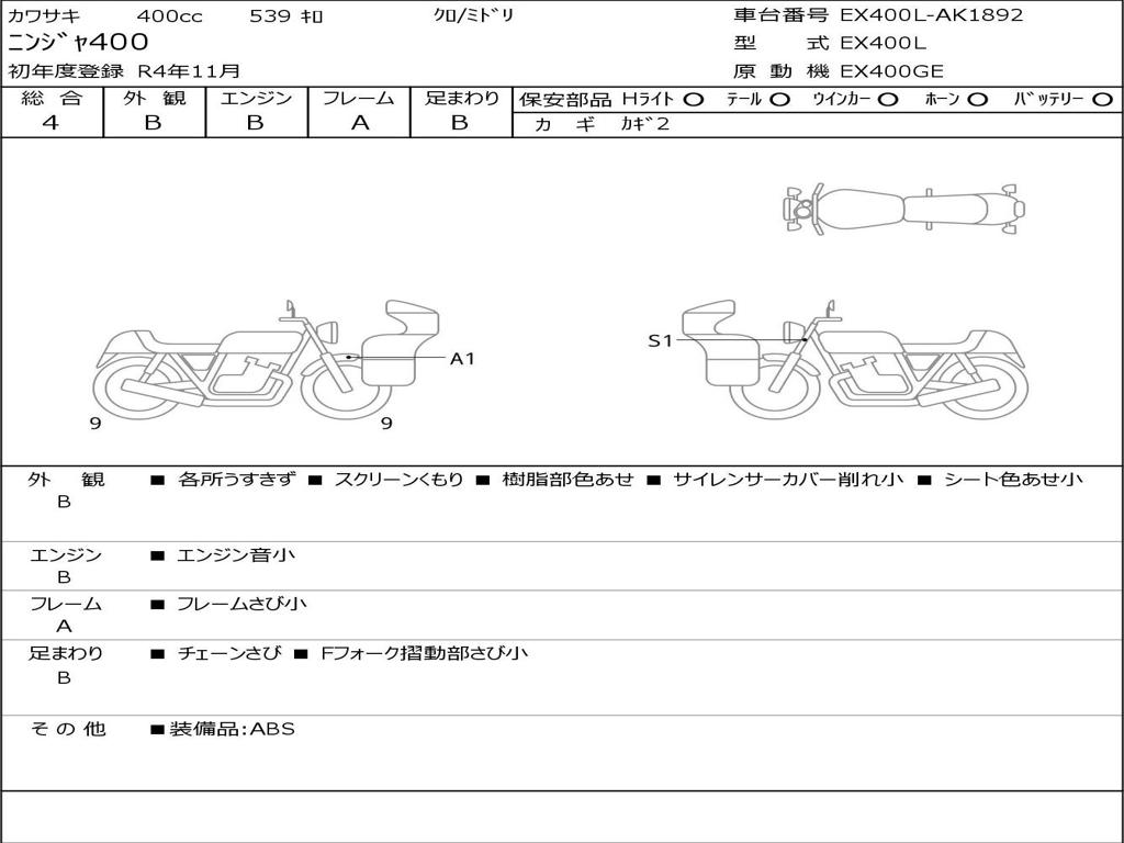 | Номер рамы / VIN | EX400L-AK1892 |