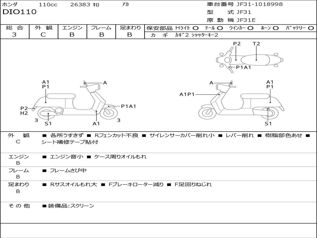 | Номер рамы / VIN | JF31-1018998 |