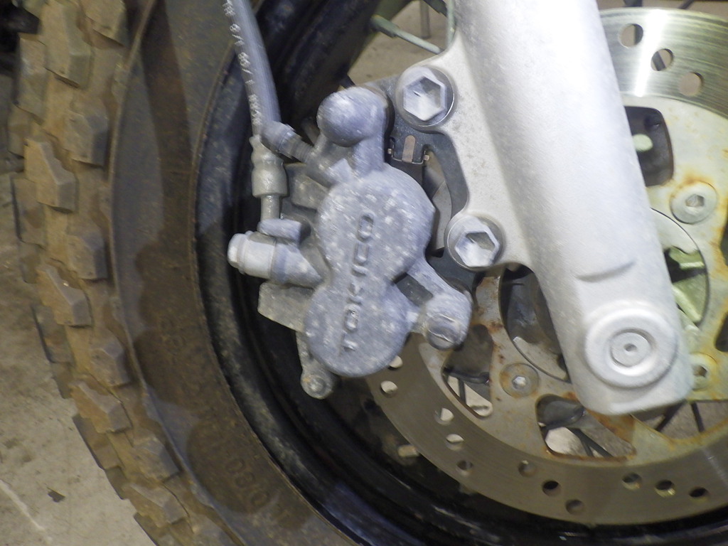 | внешняя часть вилки | следы коррозии <много>, потек масла |