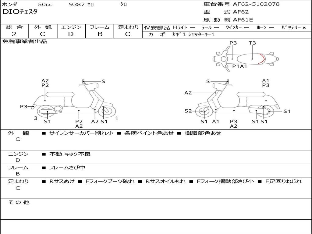 | Номер рамы / VIN | AF62-5102078 |