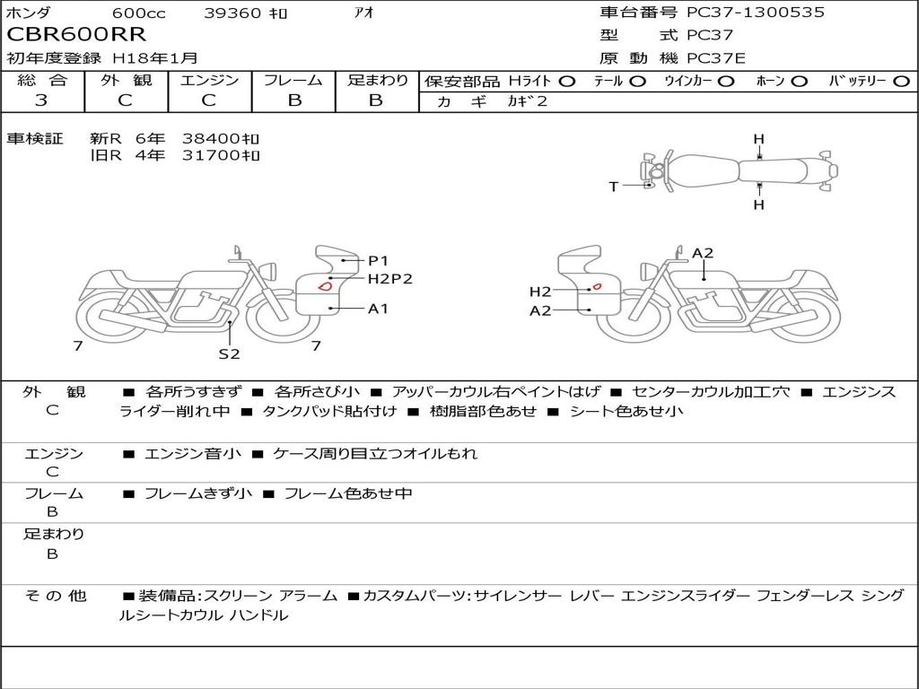 | Номер рамы / VIN | PC37-1300535 |