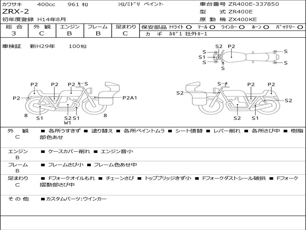 | Номер рамы / VIN | ZR400E-337850 |