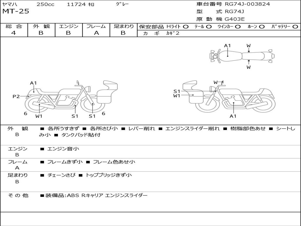 | Номер рамы / VIN | RG74J-003824 |