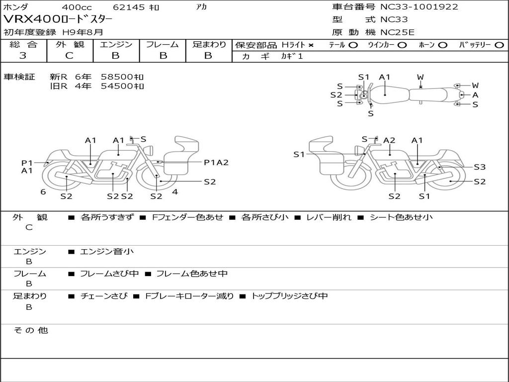 | Номер рамы / VIN | NC33-1001922 |