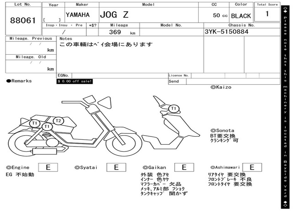 | Номер рамы / VIN | 3YK-5150884 |