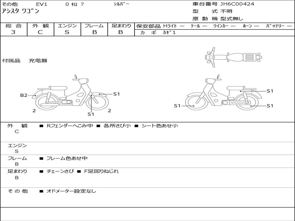| Номер рамы / VIN | JH6C00424 |