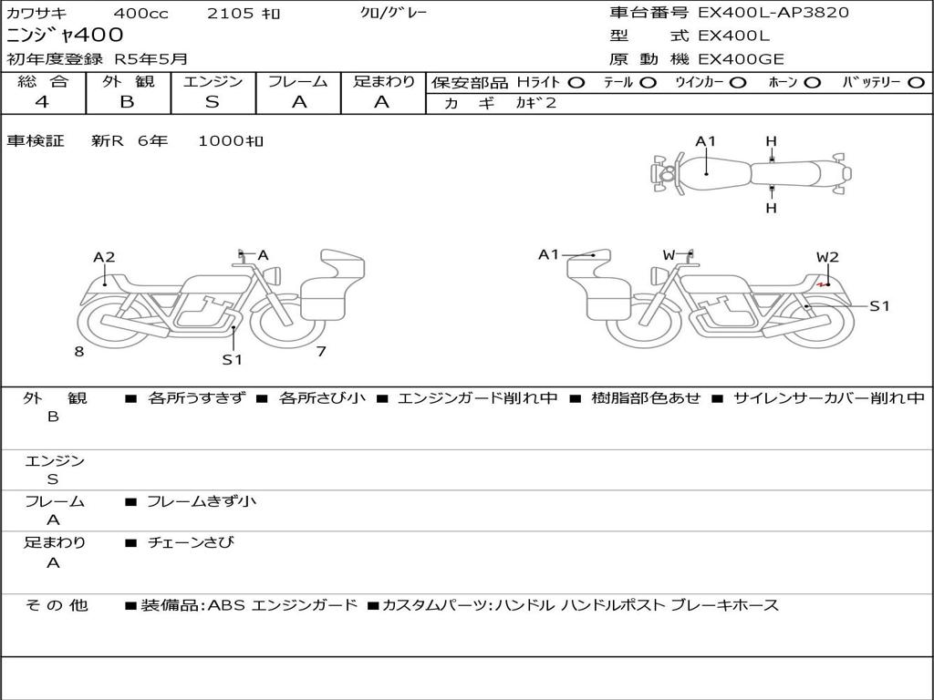 | Номер рамы / VIN | EX400L-AP3820 |