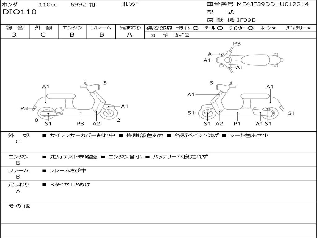 | Номер рамы / VIN | ME4JF39DDHU012214 |