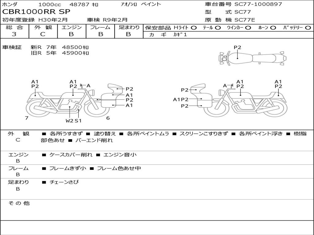 | Номер рамы / VIN | SC77-1000897 |
