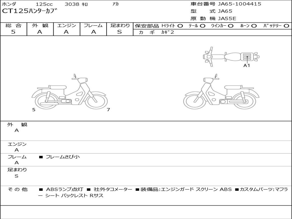| Номер рамы / VIN | JA65-1004415 |