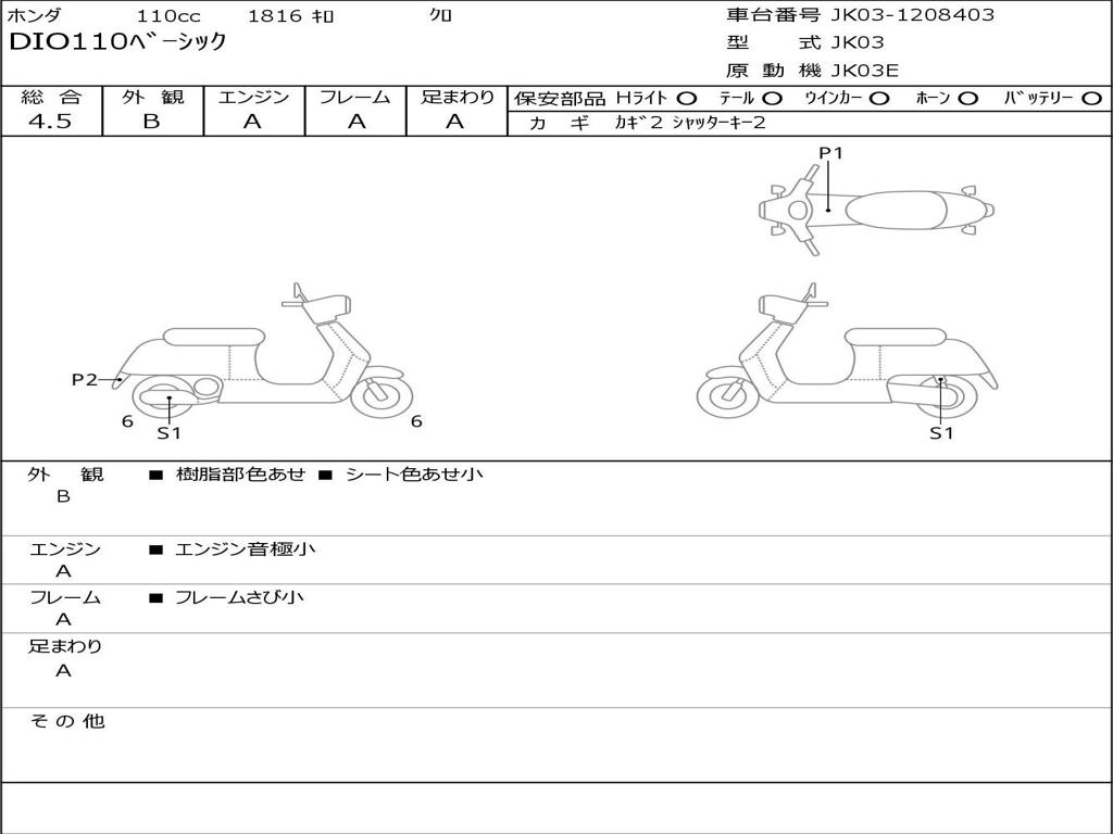 | Номер рамы / VIN | JK03-1208403 |