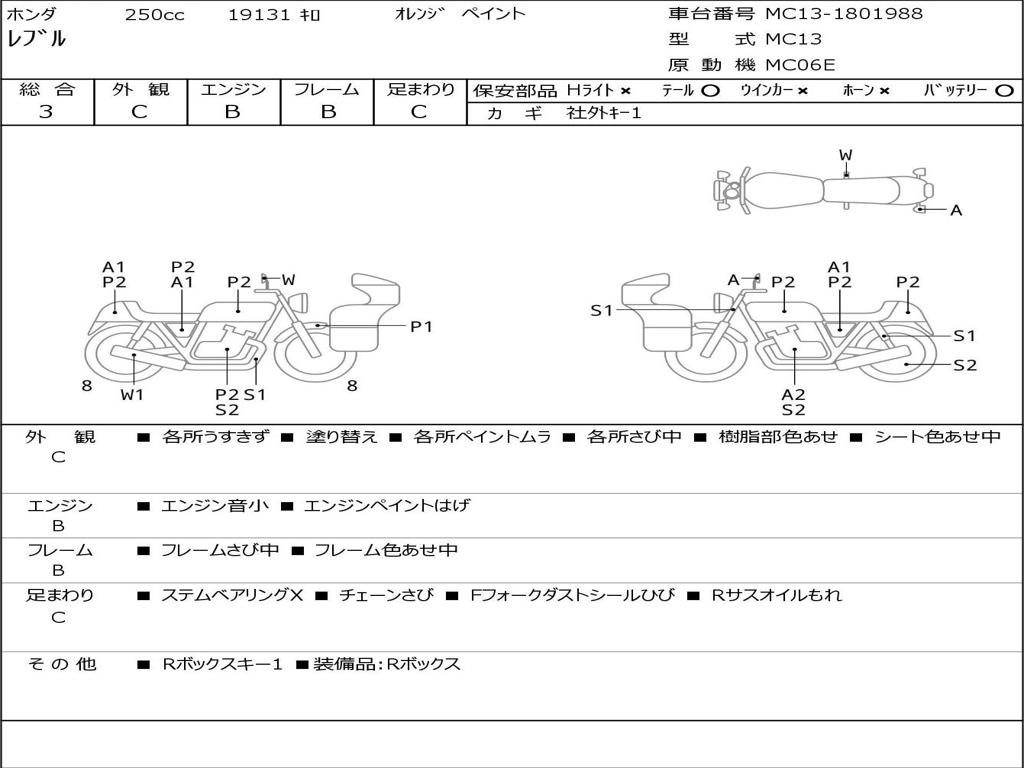 | Номер рамы / VIN | MC13-1801988 |