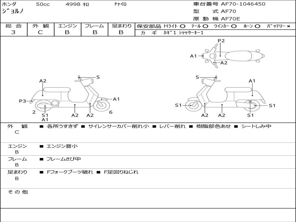 | Номер рамы / VIN | AF70-1046450 |