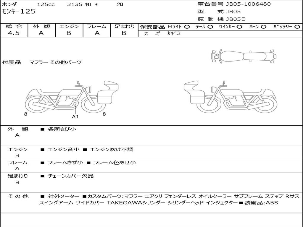 | Номер рамы / VIN | JB05-1006480 |