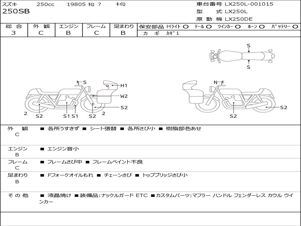 | Номер рамы / VIN | LX250L-001015 |