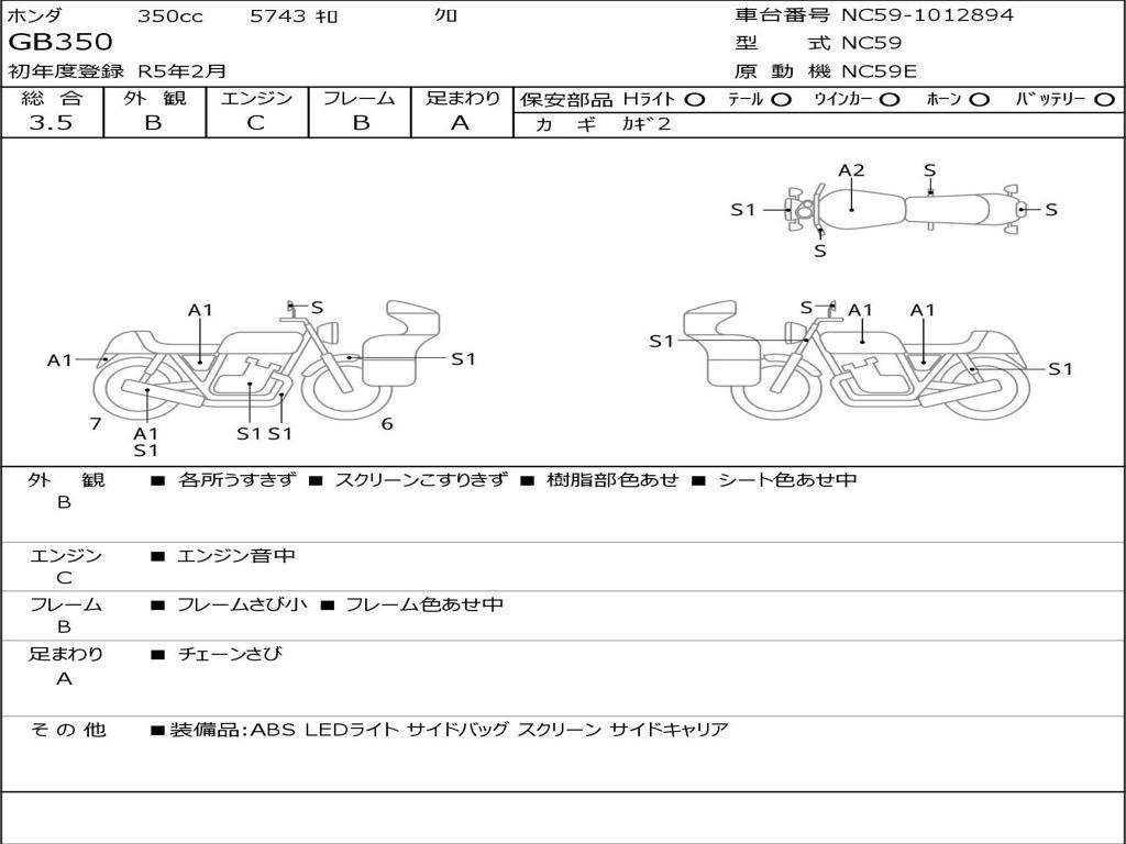 | Номер рамы / VIN | NC59-1012894 |