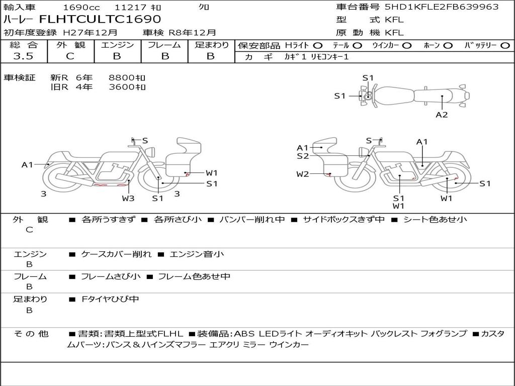 | Номер рамы / VIN | 5HD1KFLE2FB639963 |