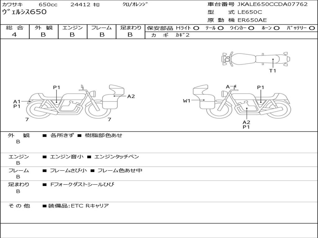 | Номер рамы / VIN | JKALE650CCDA07762 |