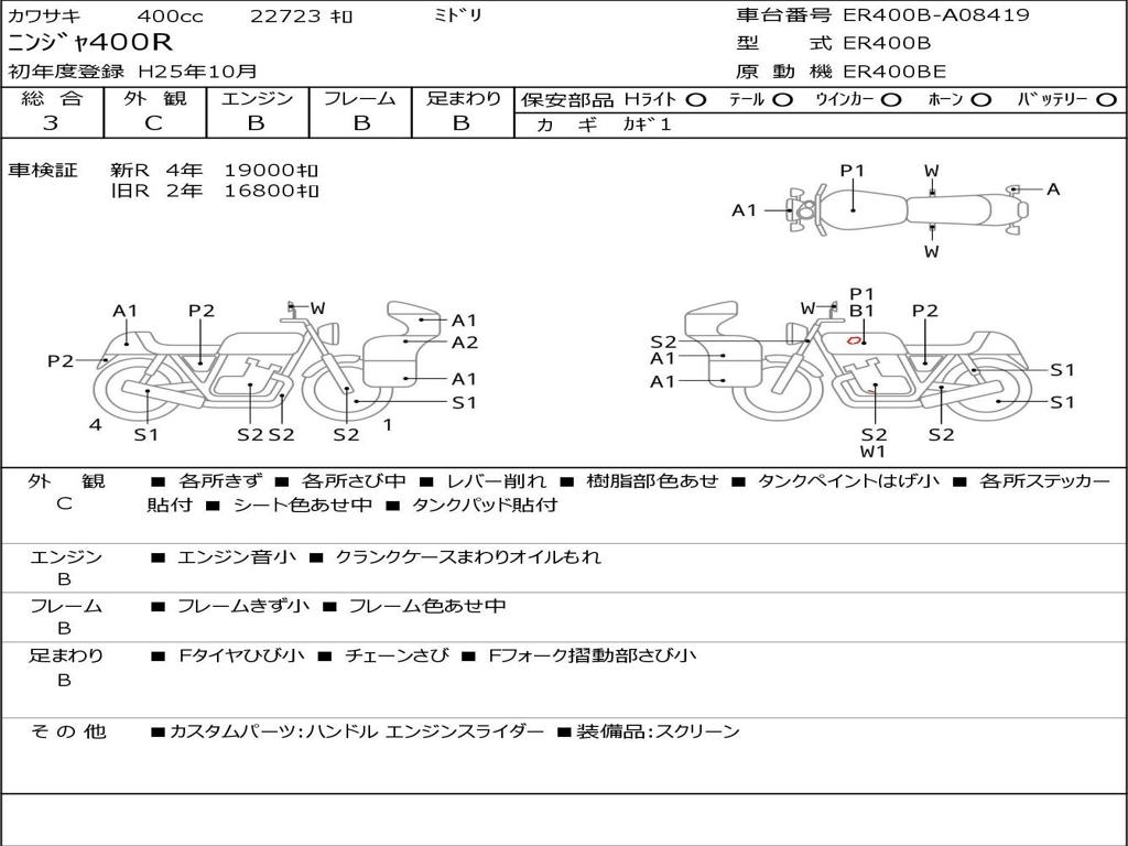 | Номер рамы / VIN | ER400B-A08419 |