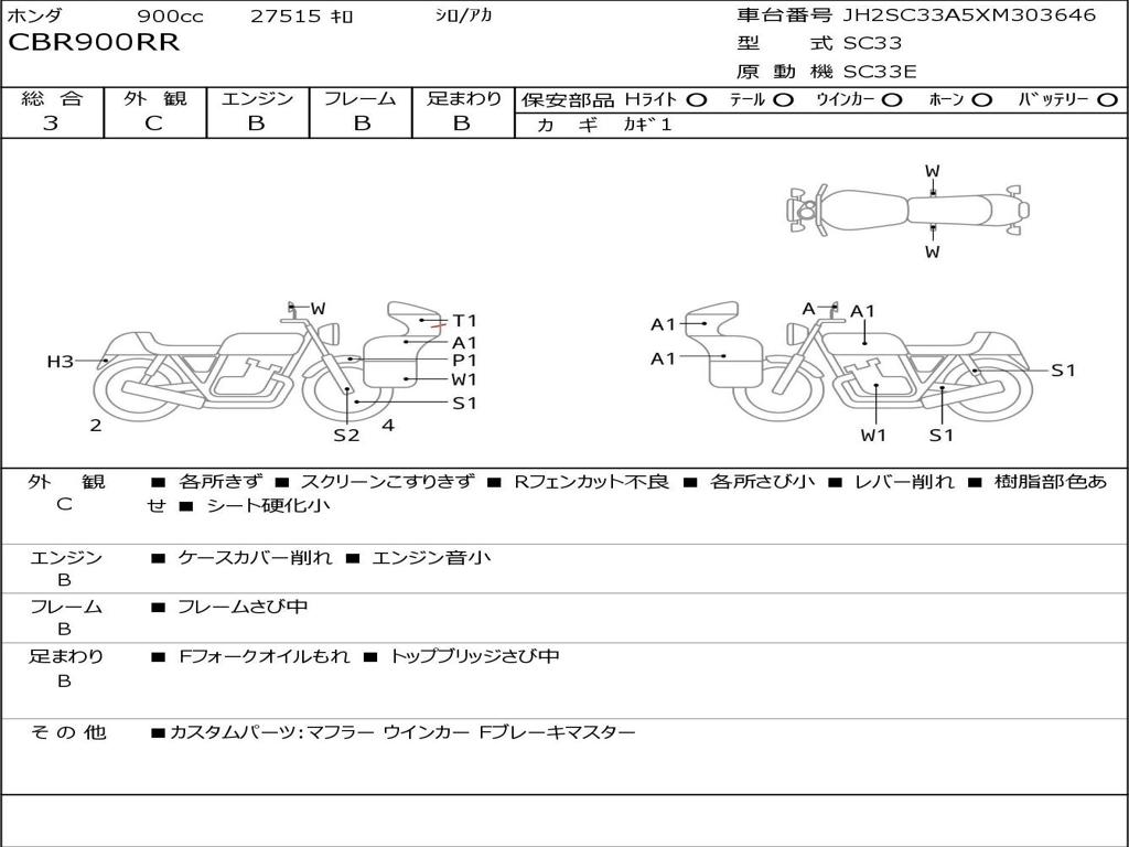 | Номер рамы / VIN | JH2SC33A5XM303646 |