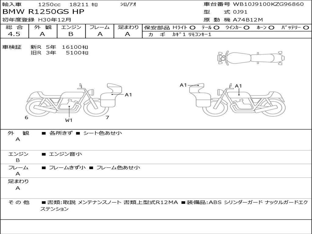 | Номер рамы / VIN | WB10J9100KZG96860 |